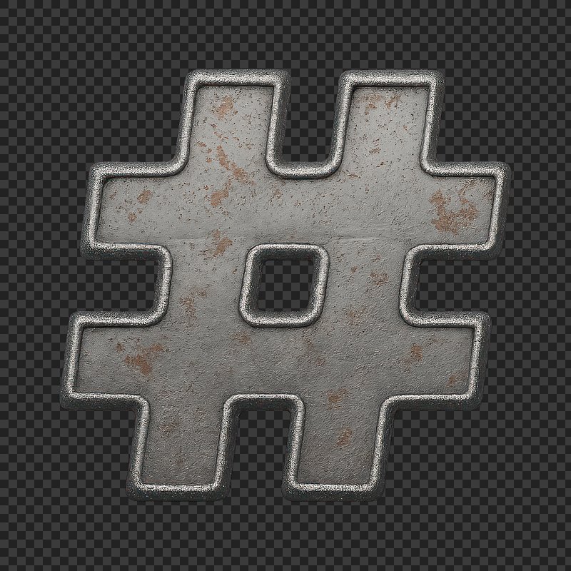 PNG Rustic metallic hashtag symbol https://www.rawpixel.com/image/24391752/png-rustic-metallic-hashtag-symbolView license