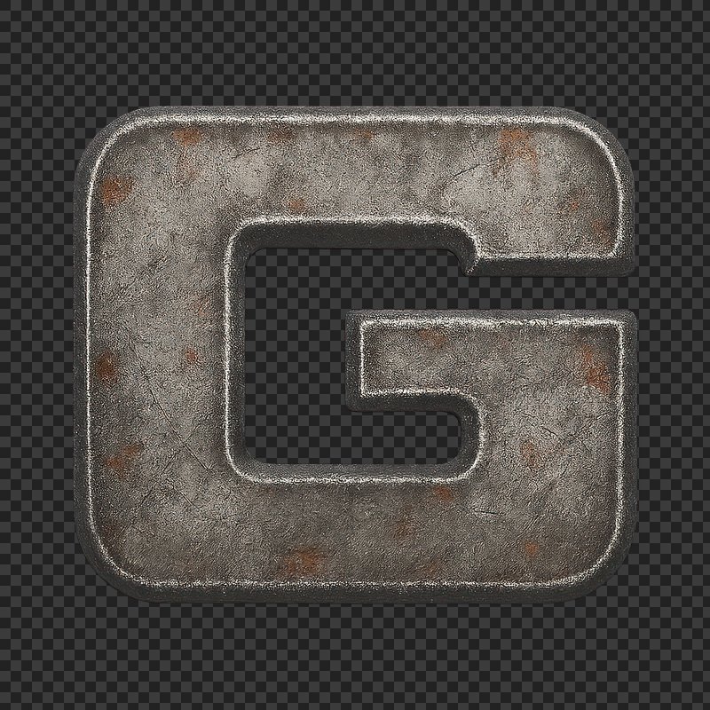 PNG Rustic metallic letter G https://www.rawpixel.com/image/24341767/png-rustic-metallic-letterView license