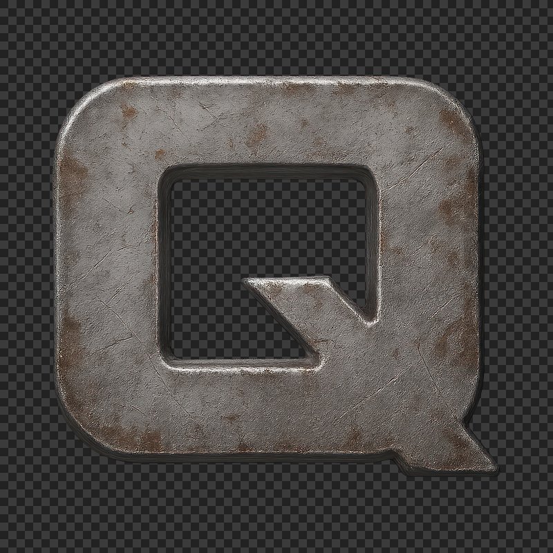 PNG Rustic metallic letter Q design. https://www.rawpixel.com/image/24341658/png-rustic-metallic-letter-designView license