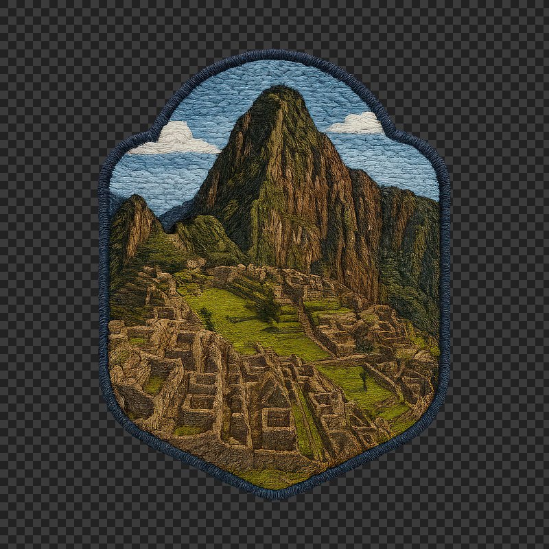 PNG Embroidered Machu Picchu patch https://www.rawpixel.com/image/24371072/png-embroidered-machu-picchu-patchView license