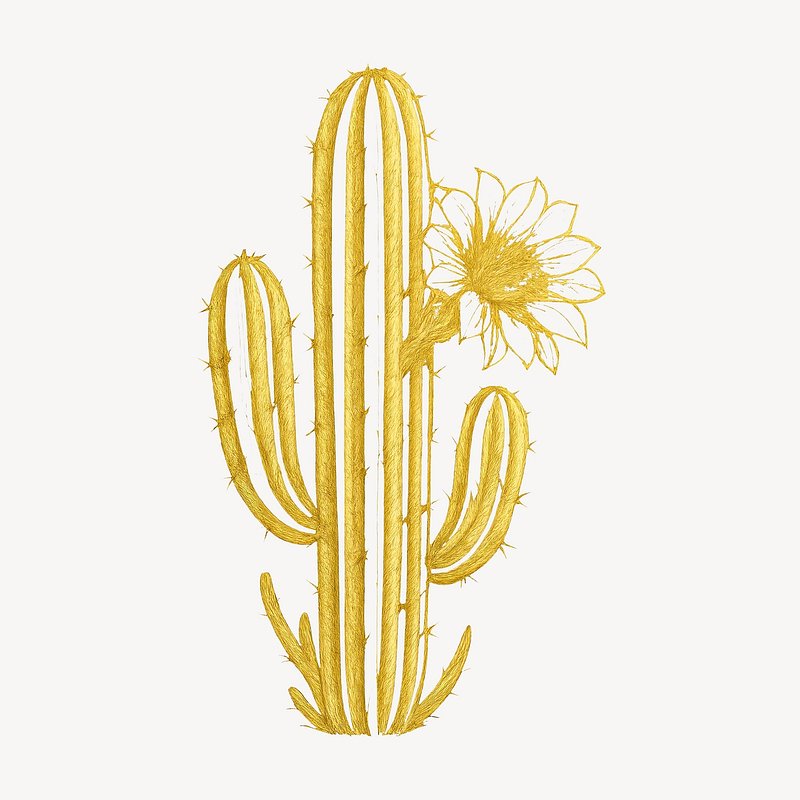 Golden cactus illustration with flower. https://www.rawpixel.com/image/24575838/golden-cactus-illustration-with-flowerView license