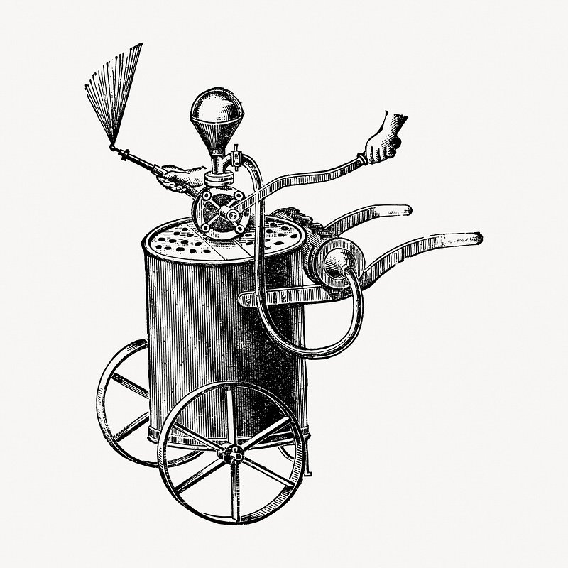 Gardening plant washer illustration, vintage vector isolated on white. Remixed by rawpixel. https://www.rawpixel.com/image/16890426/vector-vintage-technology-illustrationView license