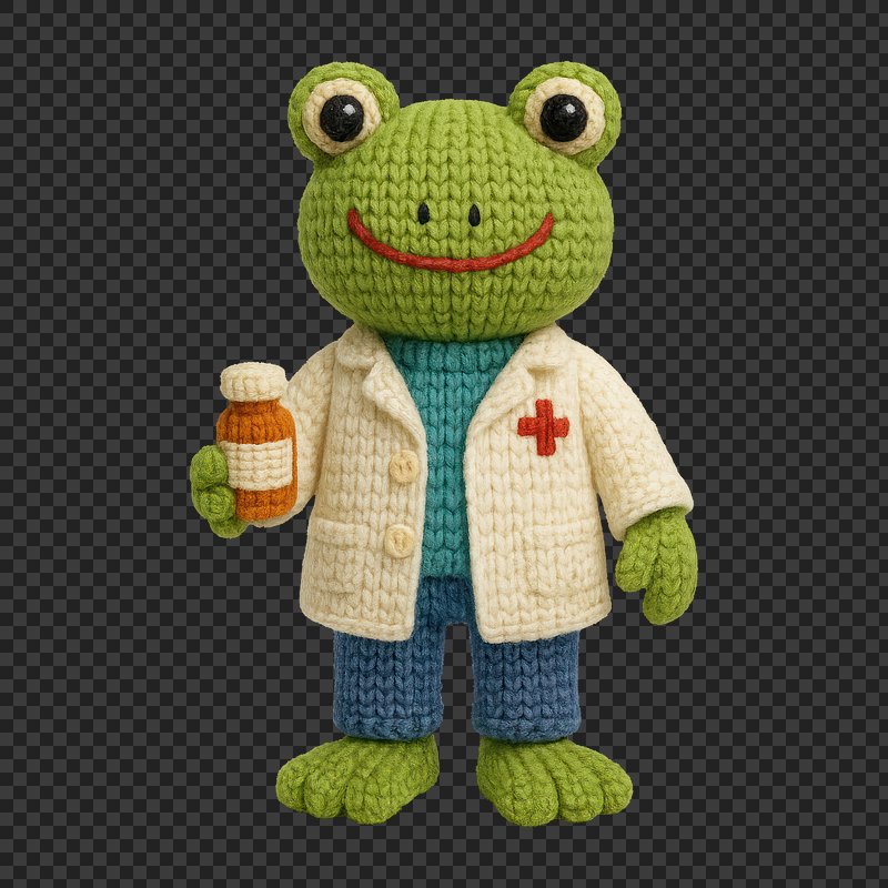 PNG Crochet frog doctor toy https://www.rawpixel.com/image/24443207/png-crochet-frog-doctor-toyView license