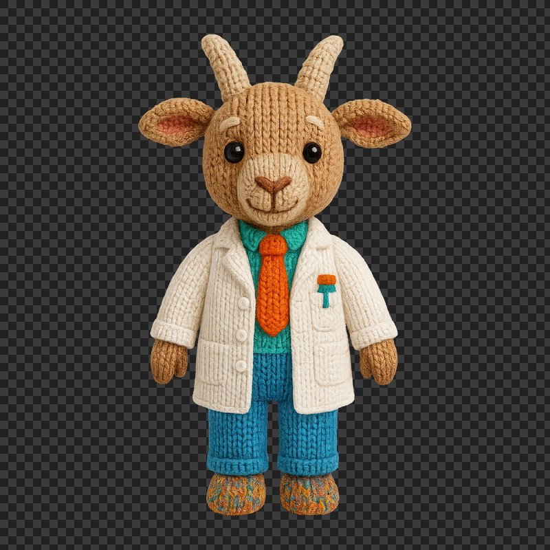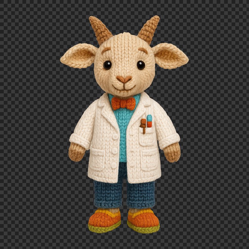 PNG Knitted goat doctor toy https://www.rawpixel.com/image/24478740/png-knitted-goat-doctor-toyView license