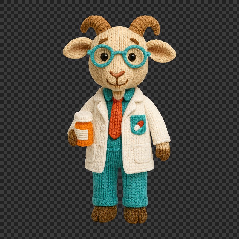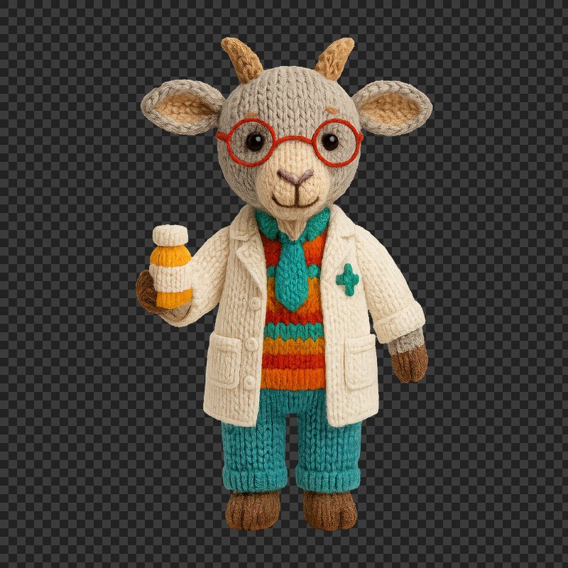 PNG Adorable knitted goat doctor https://www.rawpixel.com/image/24478751/png-adorable-knitted-goat-doctorView license