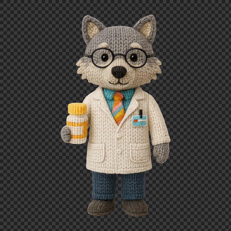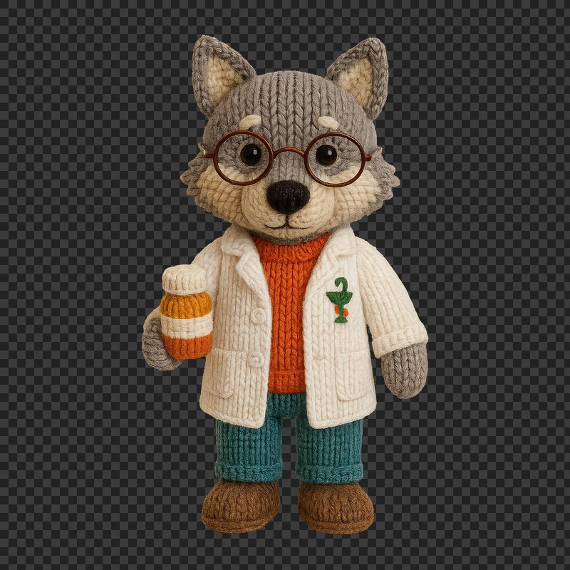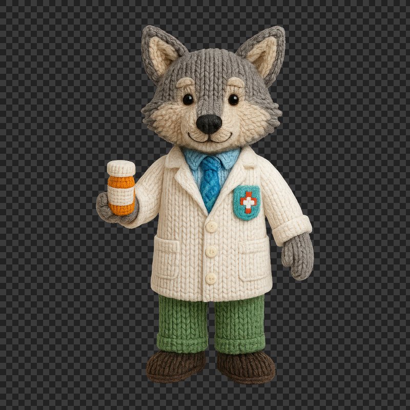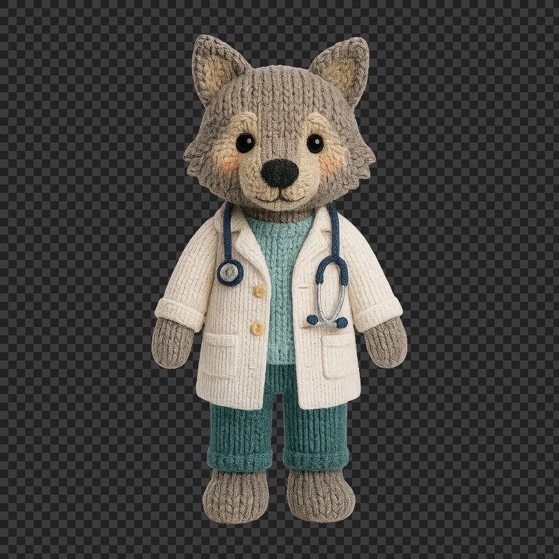 PNG Knitted wolf doctor figurine https://www.rawpixel.com/image/24522352/png-knitted-wolf-doctor-figurineView license
