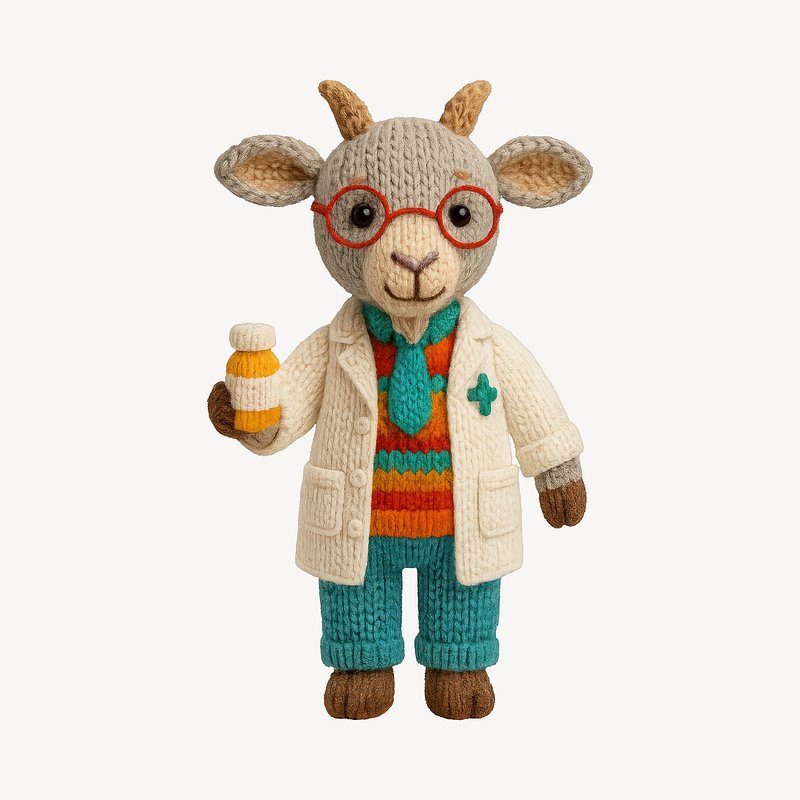 Knitted goat doctor toy https://www.rawpixel.com/image/24609687/knitted-goat-doctor-toyView license