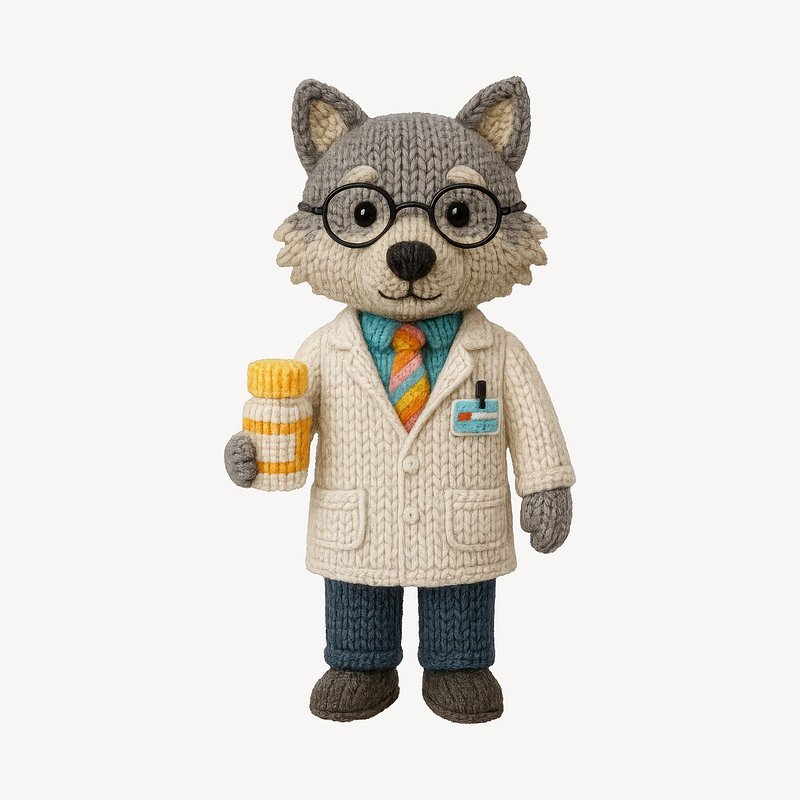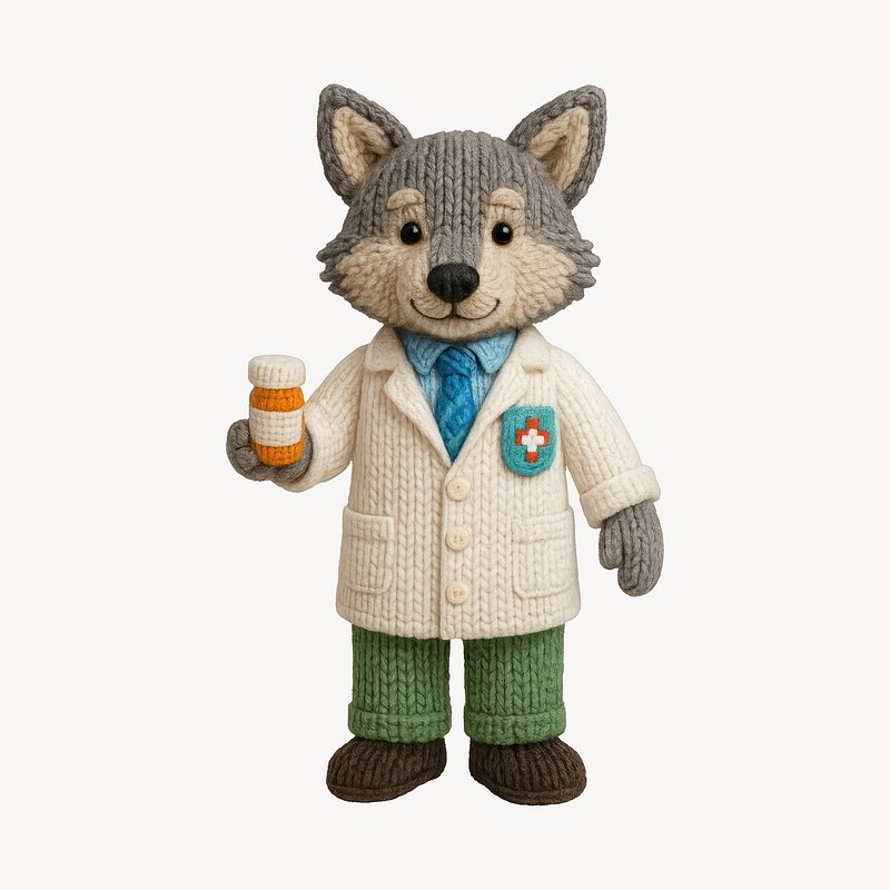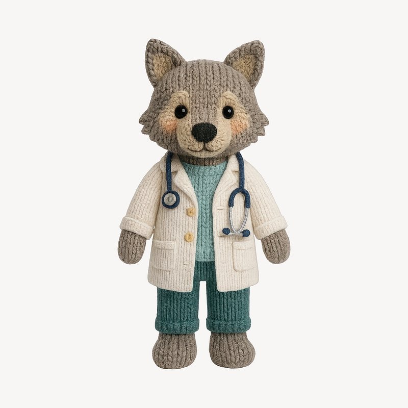 Cute knitted wolf doctor toy https://www.rawpixel.com/image/24605655/cute-knitted-wolf-doctor-toyView license