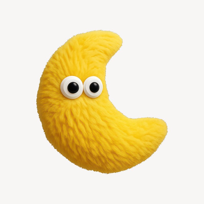 Fuzzy crescent moon with eyes https://www.rawpixel.com/image/24709914/fuzzy-crescent-moon-with-eyesView license