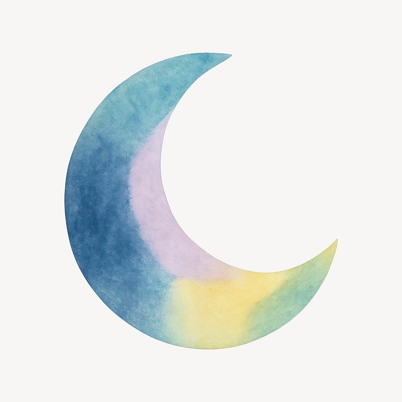 Colorful watercolor crescent moon https://www.rawpixel.com/image/24932322/colorful-watercolor-crescent-moonView license