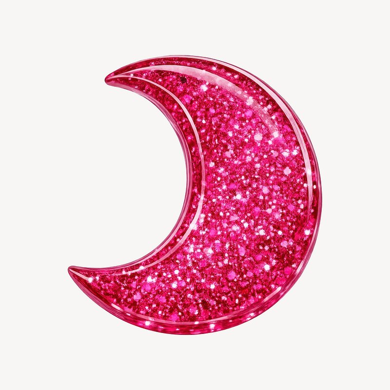 Glittery pink crescent moon design. https://www.rawpixel.com/image/25533131/glittery-pink-crescent-moon-designView license