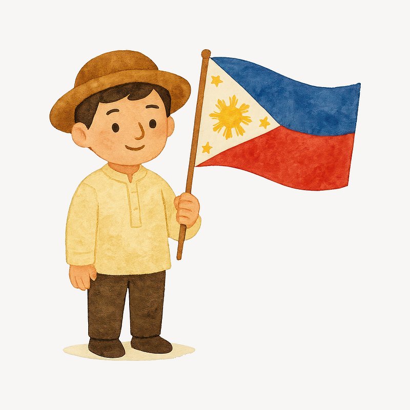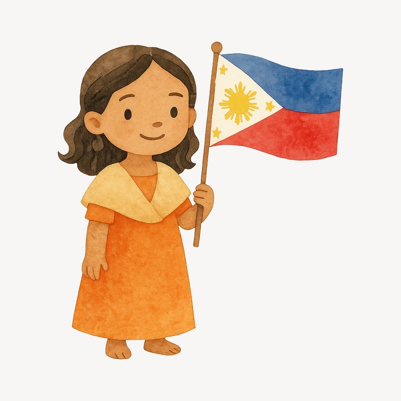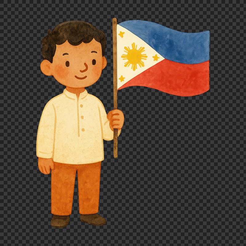 Cartoon child holding Philippine flag. https://www.rawpixel.com/image/19436628/cartoon-child-holding-philippine-flagView license