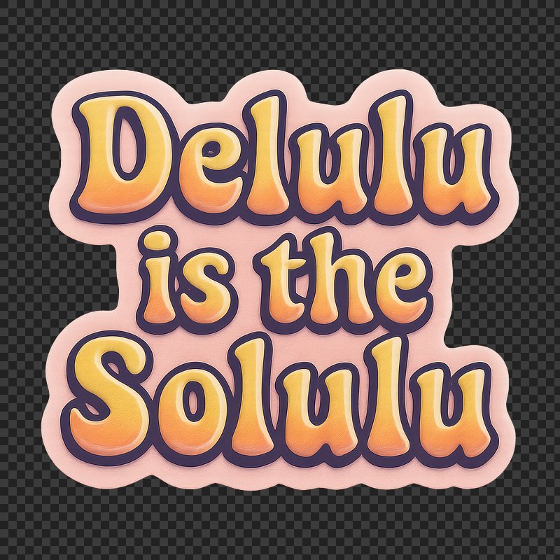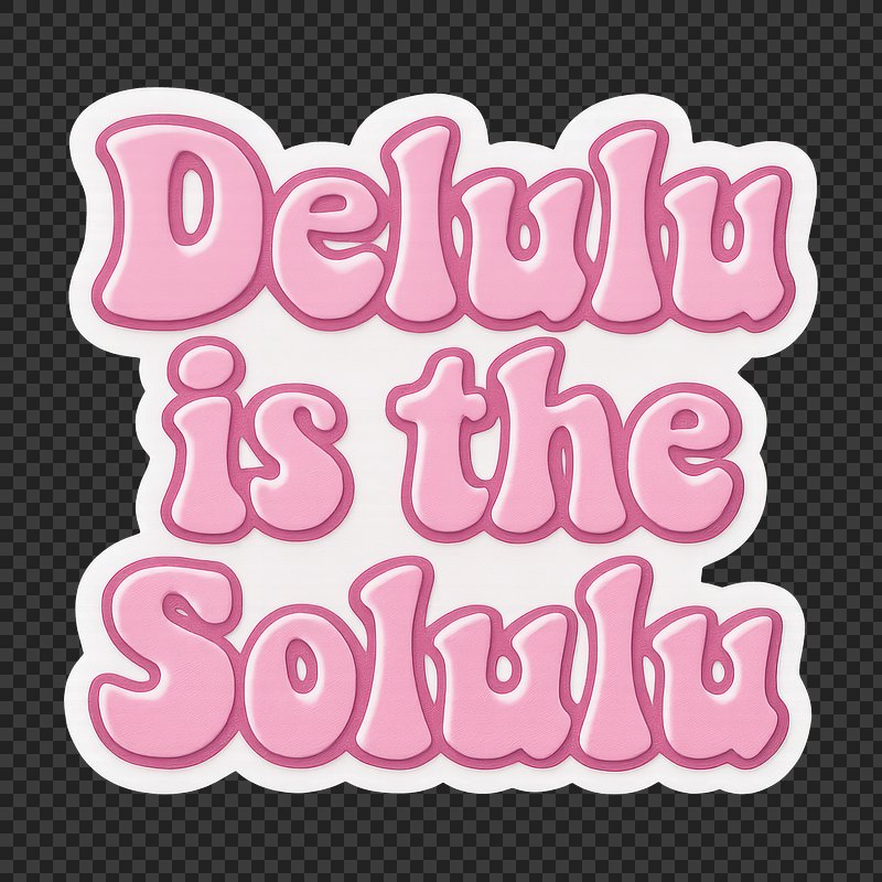 Delulu is the solulu png word sticker on transparent background https://www.rawpixel.com/image/24577804/delulu-the-solulu-png-word-sticker-transparent-backgroundView license