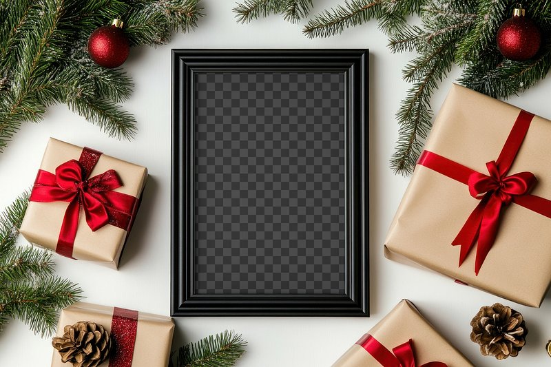 Festive frame mockup with gifts png, transparent design https://www.rawpixel.com/image/24016580/festive-frame-mockup-with-gifts-png-transparent-designView license