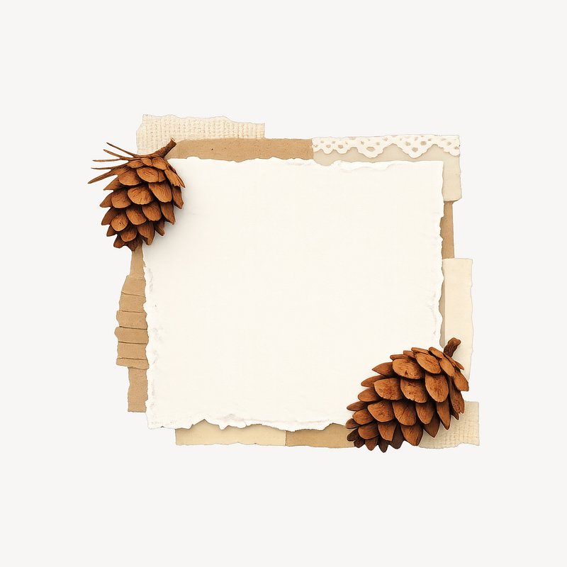 Rustic scrapbook frame with pinecone. https://www.rawpixel.com/image/25625877/rustic-scrapbook-frame-with-pineconeView license