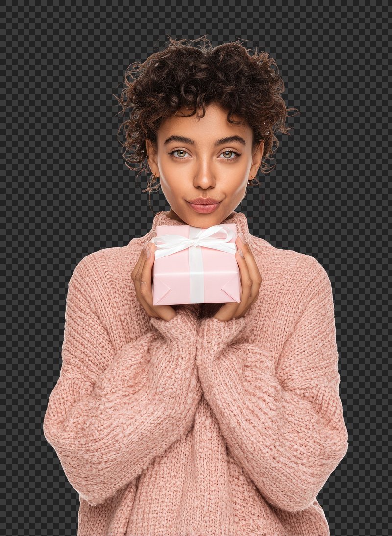PNG Woman holding pink gift box. https://www.rawpixel.com/image/22940343/png-woman-holding-pink-gift-boxView license