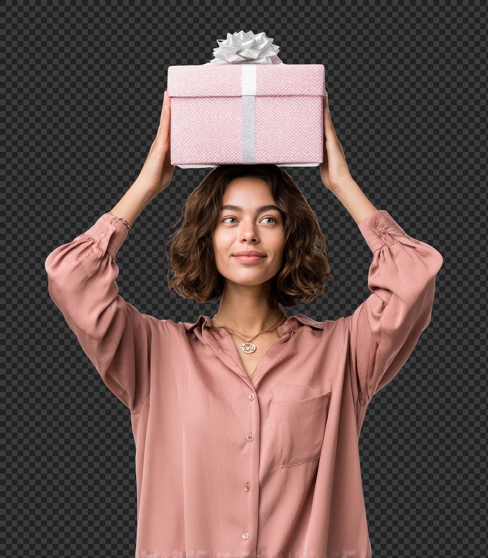 PNG Woman holding pink gift box https://www.rawpixel.com/image/22937141/png-woman-holding-pink-gift-boxView license