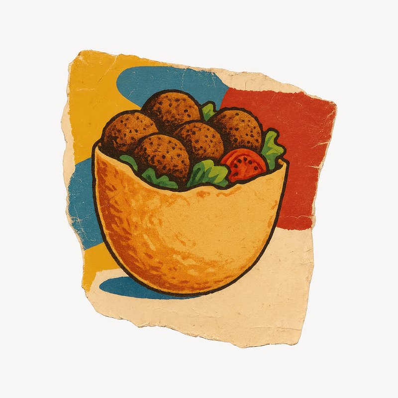Vintage falafel pita illustration. https://www.rawpixel.com/image/24575430/vintage-falafel-pita-illustrationView license