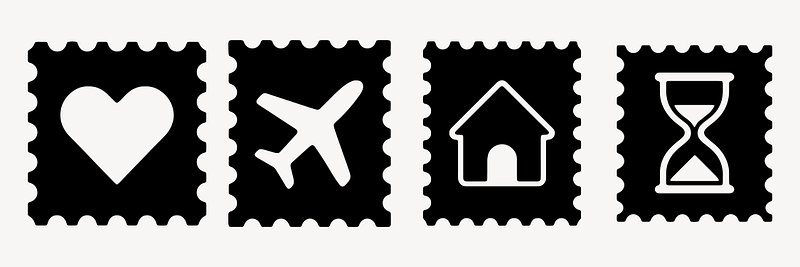Minimalist icons on postage stamps vector set https://www.rawpixel.com/image/25753493/minimalist-icons-postage-stamps-vector-setView license