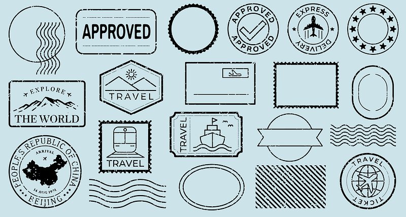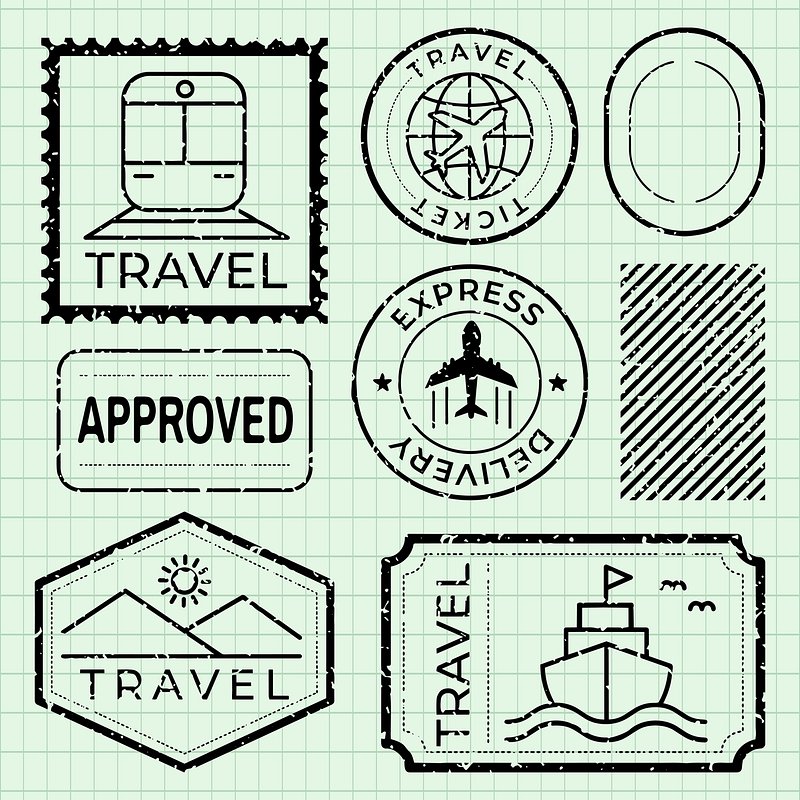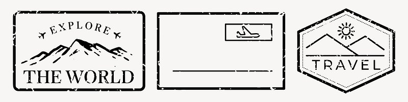 Vintage travel-themed stamp designs illustration vector set. https://www.rawpixel.com/image/25691069/vintage-travel-themed-stamp-designs-illustration-vector-setView license