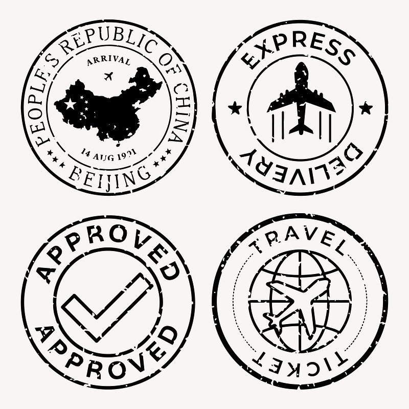 Travel-themed vintage passport stamps illustration vector set. https://www.rawpixel.com/image/25693706/travel-themed-vintage-passport-stamps-illustration-vector-setView license
