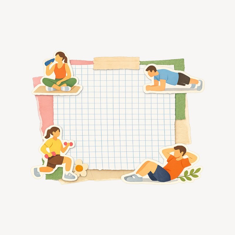 Colorful exercise-themed scrapbook template. https://www.rawpixel.com/image/25774704/colorful-exercise-themed-scrapbook-templateView license