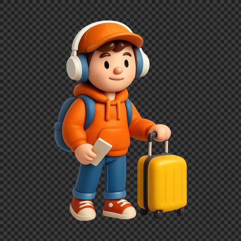 PNG Cartoon traveler with suitcase https://www.rawpixel.com/image/19405759/png-cartoon-traveler-with-suitcaseView license