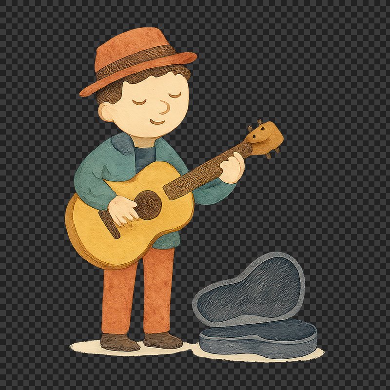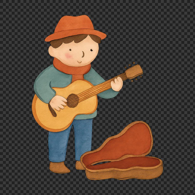 PNG Whimsical guitarist illustration outdoors. https://www.rawpixel.com/image/19060288/png-whimsical-guitarist-illustration-outdoorsView license
