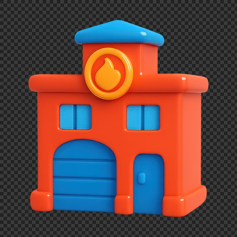 PNG Colorful toy fire station building. https://www.rawpixel.com/image/19616908/png-colorful-toy-fire-station-buildingView license