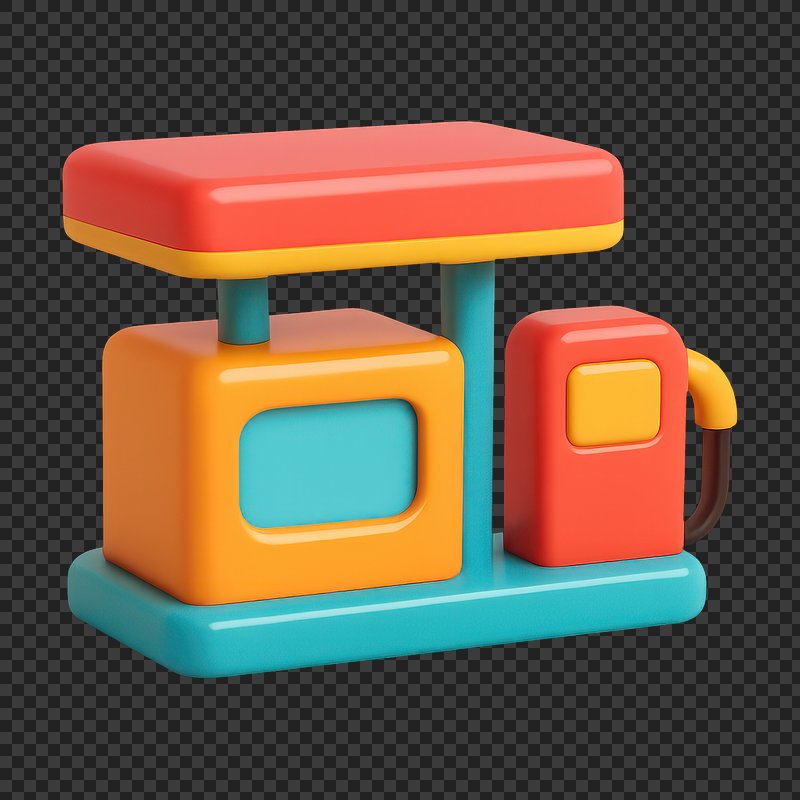 PNG Colorful 3D cartoon gas station. https://www.rawpixel.com/image/19623033/png-colorful-cartoon-gas-stationView license