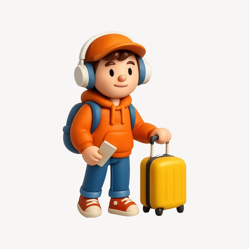 Traveler cartoon character with luggage. https://www.rawpixel.com/image/21086237/traveler-cartoon-character-with-luggageView license