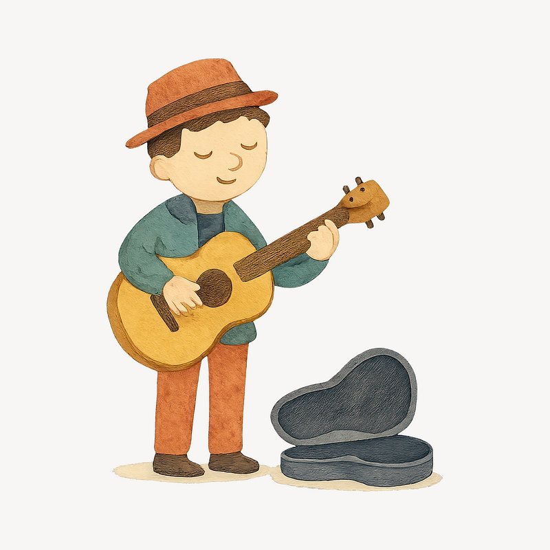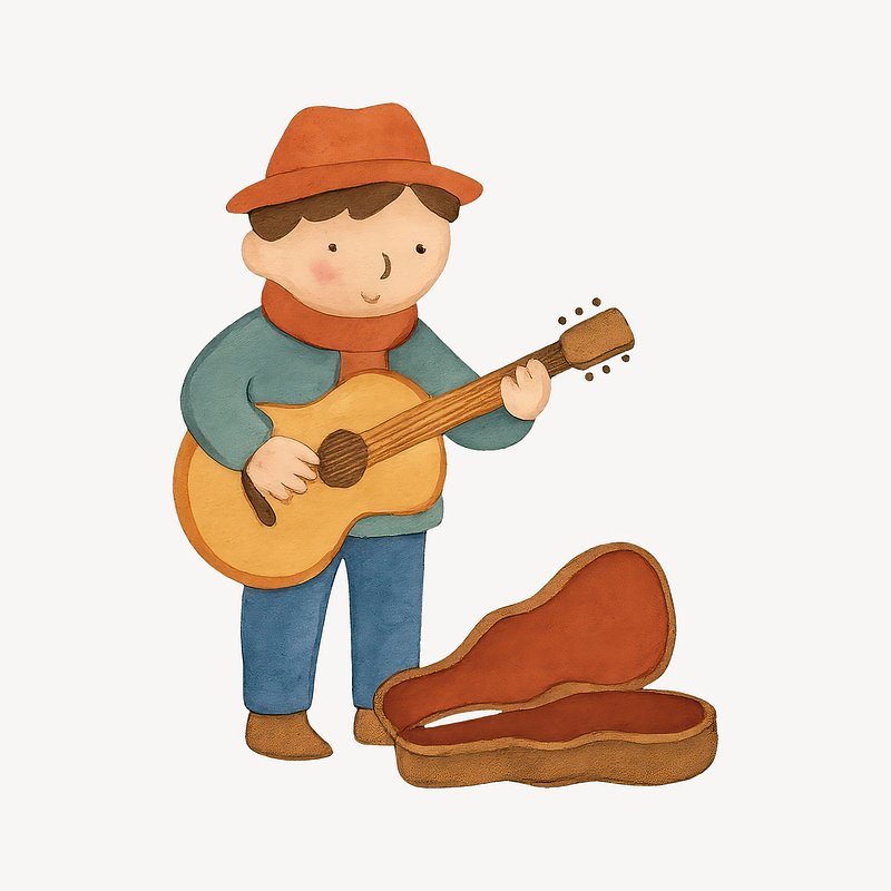 Cartoon musician playing guitar https://www.rawpixel.com/image/20650499/cartoon-musician-playing-guitarView license
