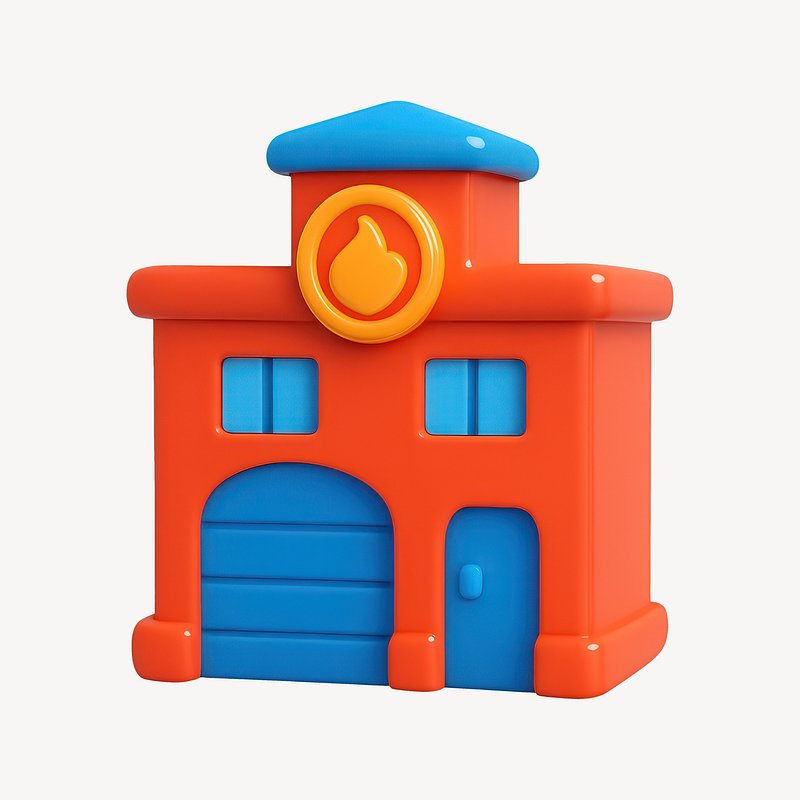 Colorful toy fire station building. https://www.rawpixel.com/image/20466029/colorful-toy-fire-station-buildingView license