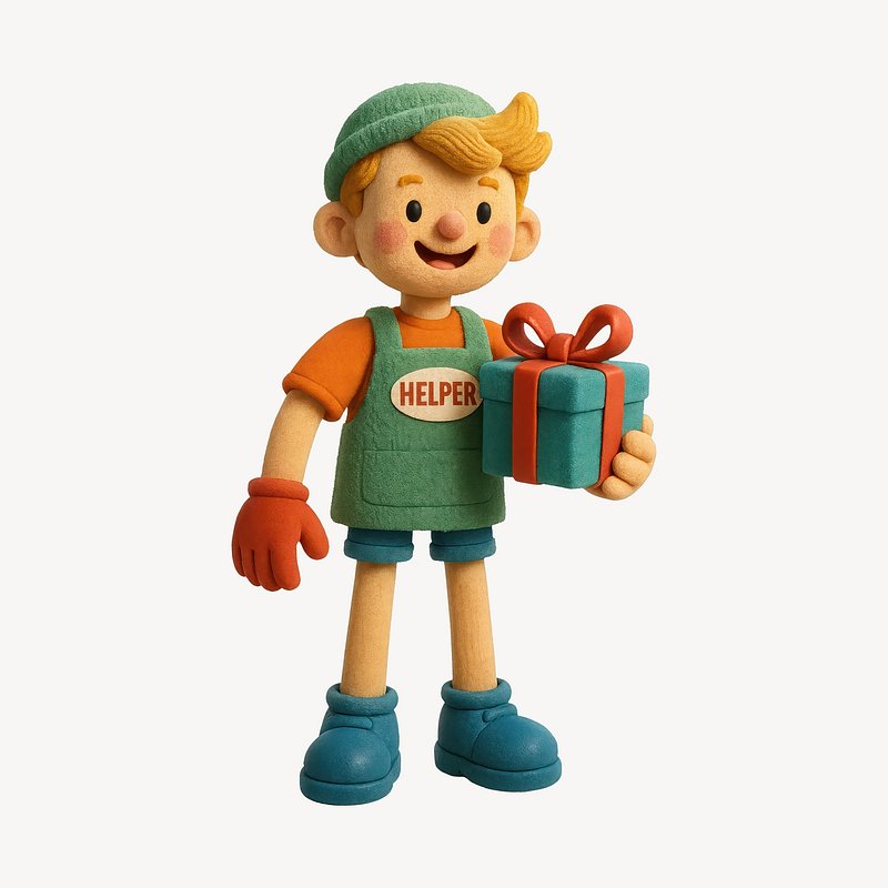 Playful helper holding gift. https://www.rawpixel.com/image/22984532/playful-helper-holding-giftView license