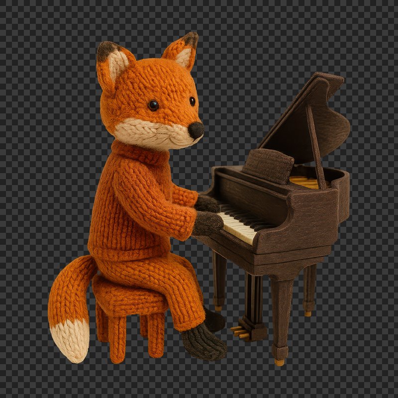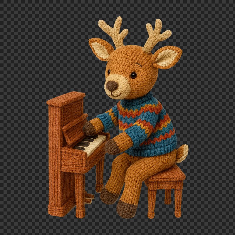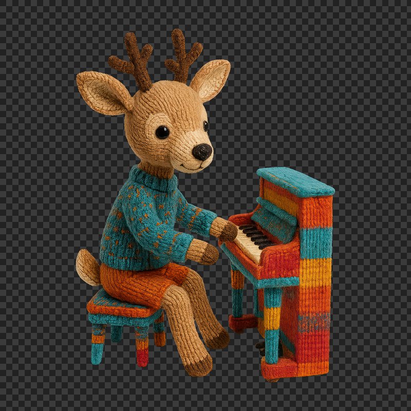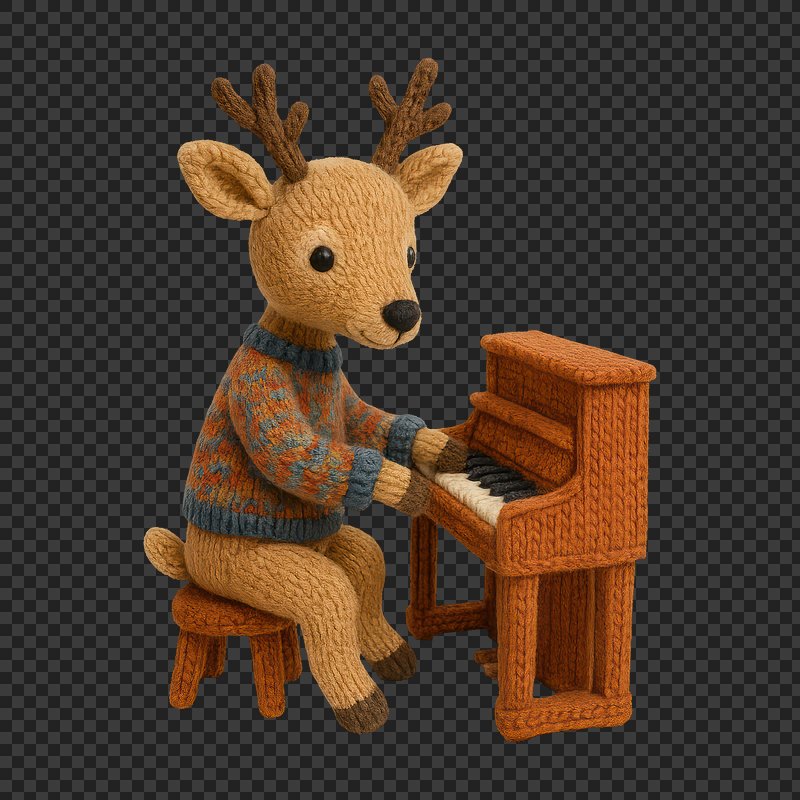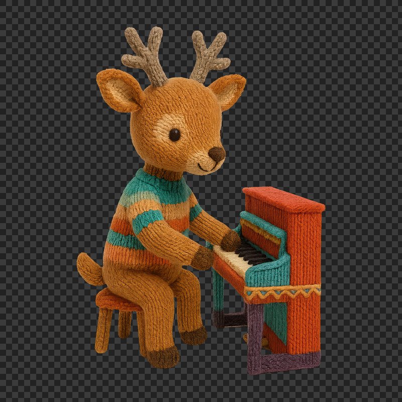 PNG Knitted deer playing piano joyfully. https://www.rawpixel.com/image/24441918/png-knitted-deer-playing-piano-joyfullyView license