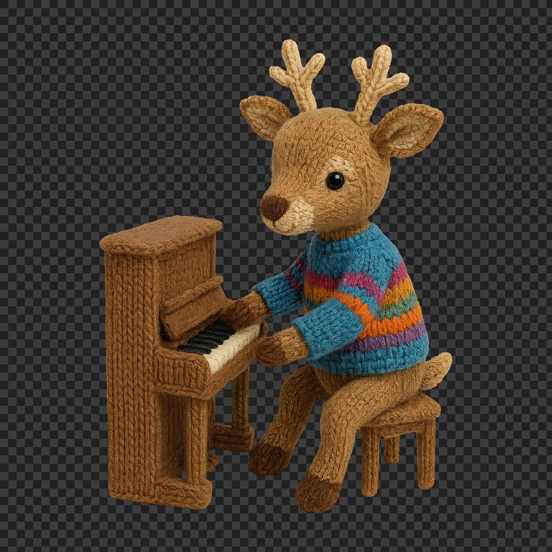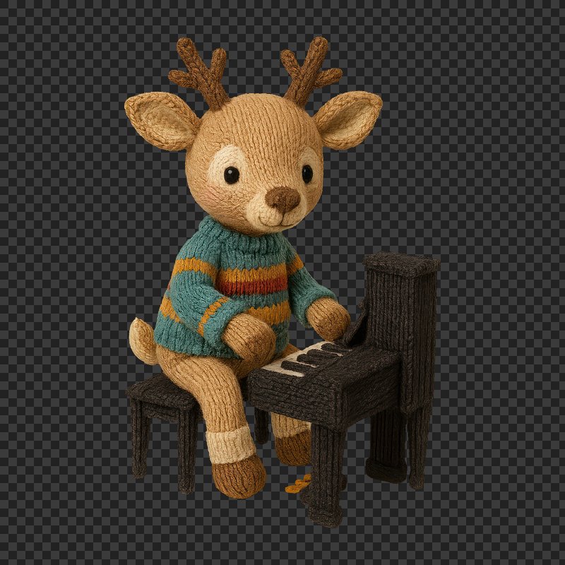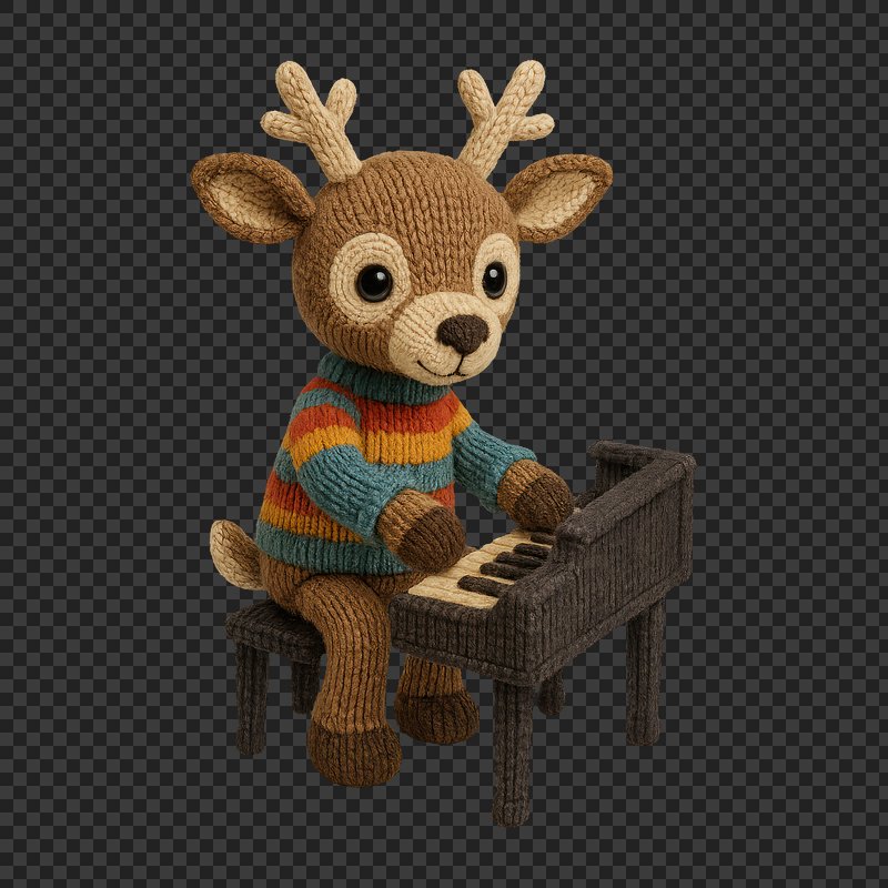 PNG Cute knitted deer playing piano. https://www.rawpixel.com/image/24441936/png-cute-knitted-deer-playing-pianoView license