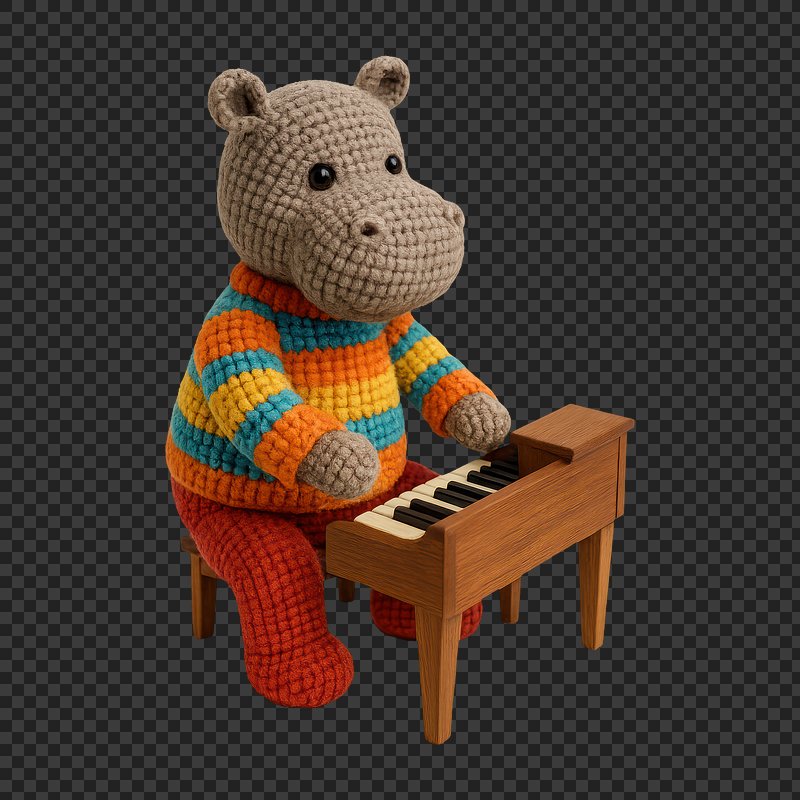 Crochet hippo playing piano https://www.rawpixel.com/image/24604802/crochet-hippo-playing-pianoView license