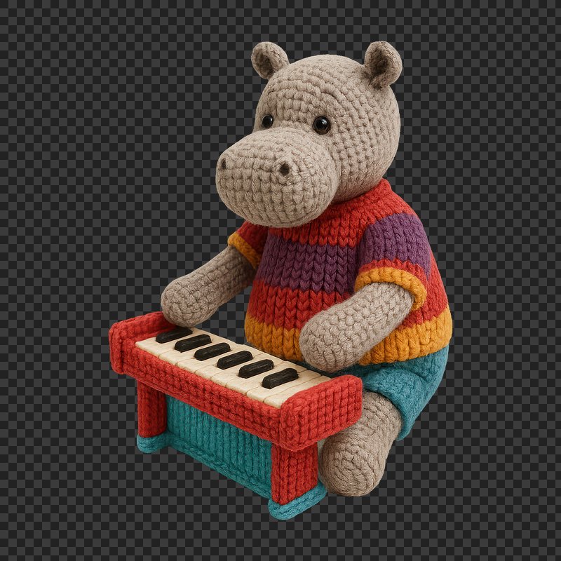 PNG Knitted hippo playing piano https://www.rawpixel.com/image/24479793/png-knitted-hippo-playing-pianoView license