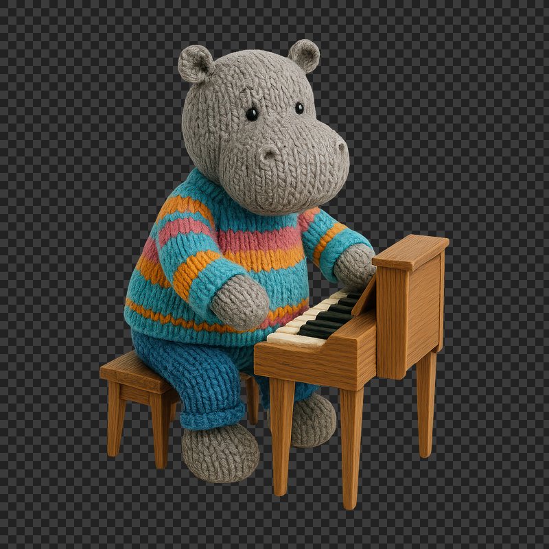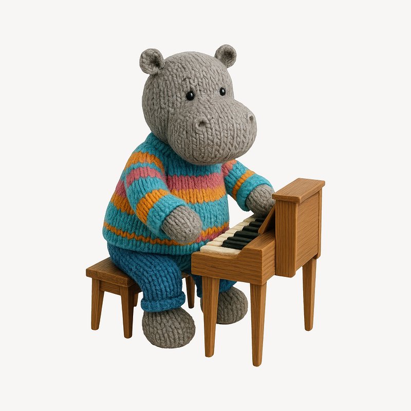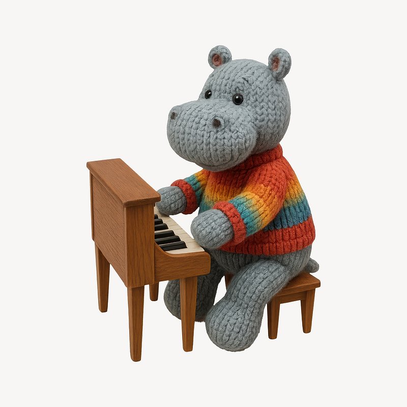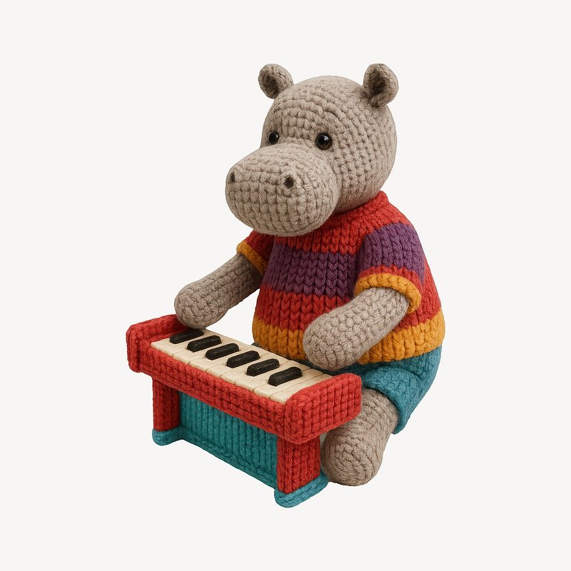 Knitted hippo playing piano https://www.rawpixel.com/image/24607649/knitted-hippo-playing-pianoView license