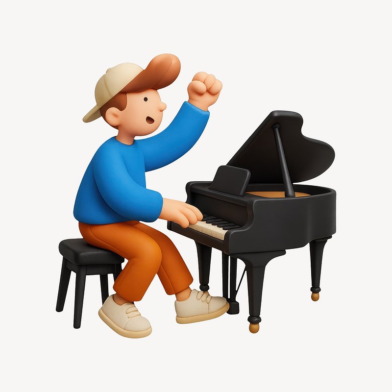 Cartoon pianist playing piano joyfully. https://www.rawpixel.com/image/24237844/cartoon-pianist-playing-piano-joyfullyView license