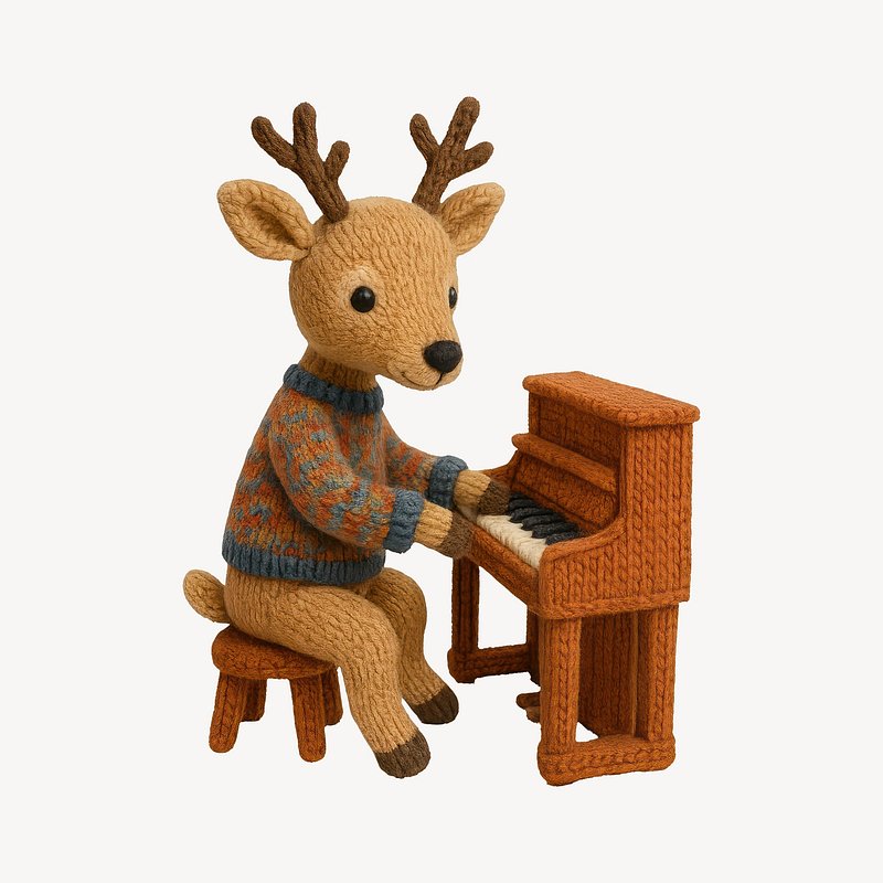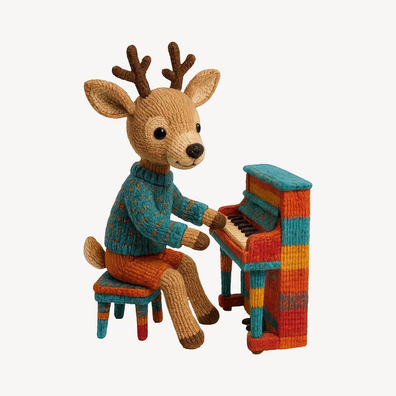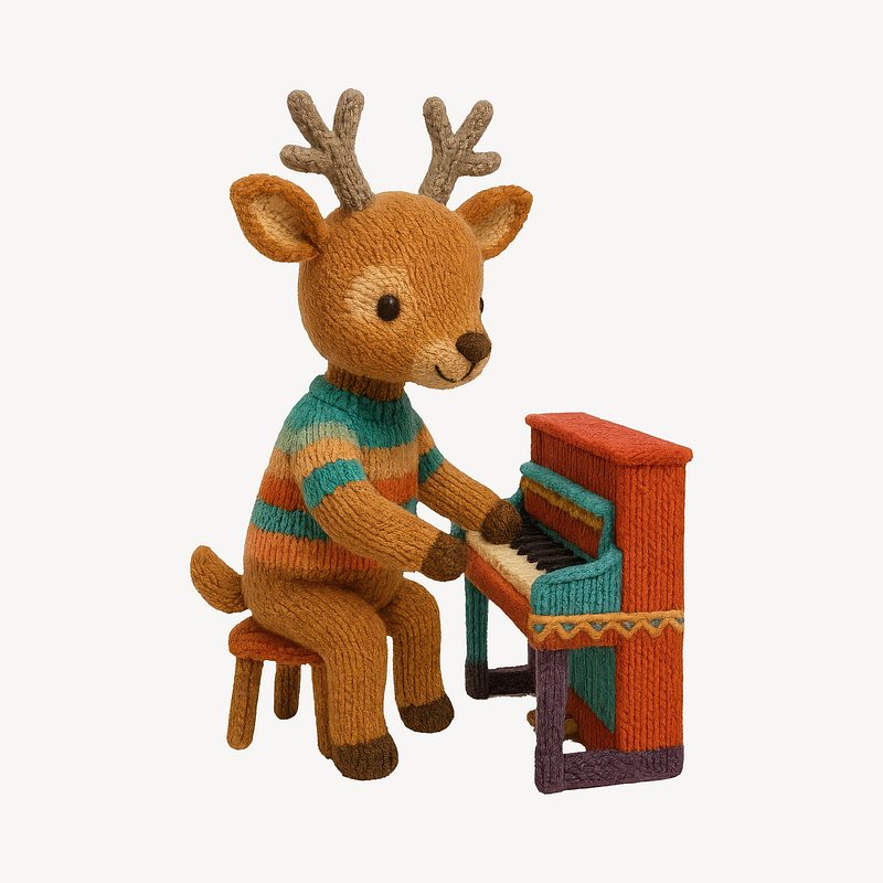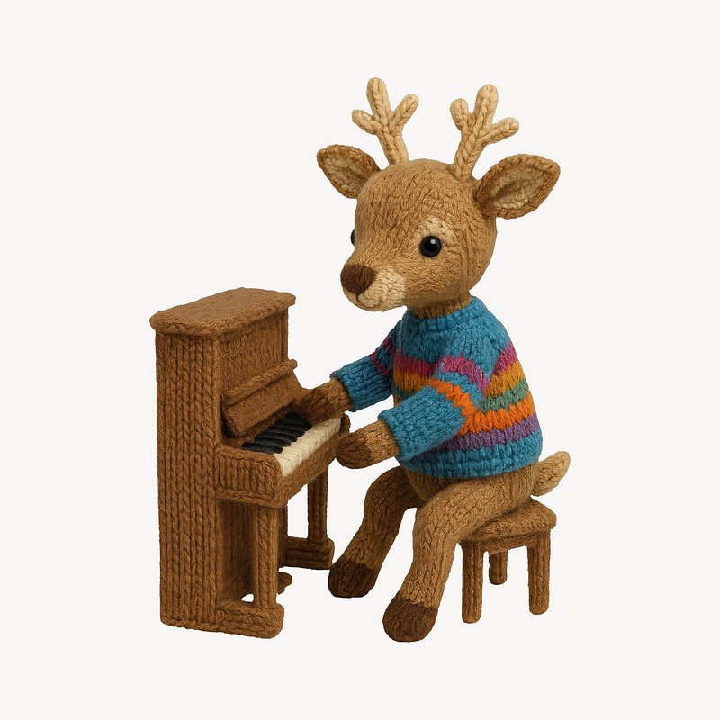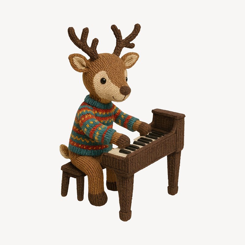 Knitted deer playing piano https://www.rawpixel.com/image/24535031/knitted-deer-playing-pianoView license