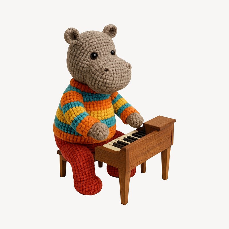 Crochet hippo playing piano https://www.rawpixel.com/image/24608196/crochet-hippo-playing-pianoView license