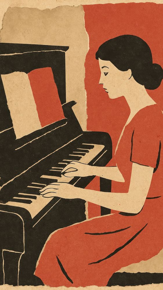 Female pianist png sticker illustration, transparent background. https://www.rawpixel.com/image/6653931/png-sticker-public-domainView license