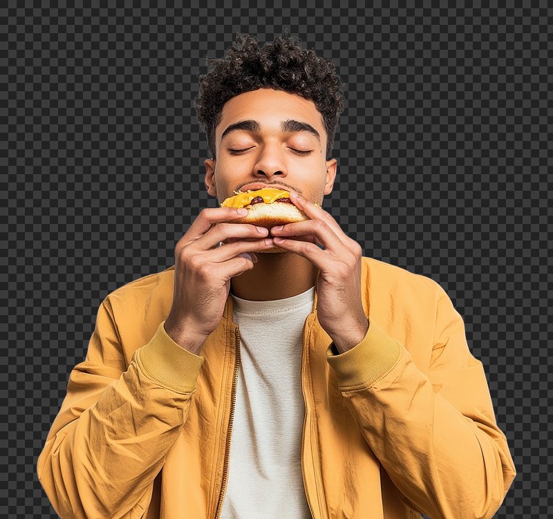PNG Mixed race man enjoy eating hamburger indulgence delicious happiness. https://www.rawpixel.com/image/18253102/png-mixed-race-man-enjoy-eating-hamburger-indulgence-delicious-happinessView license