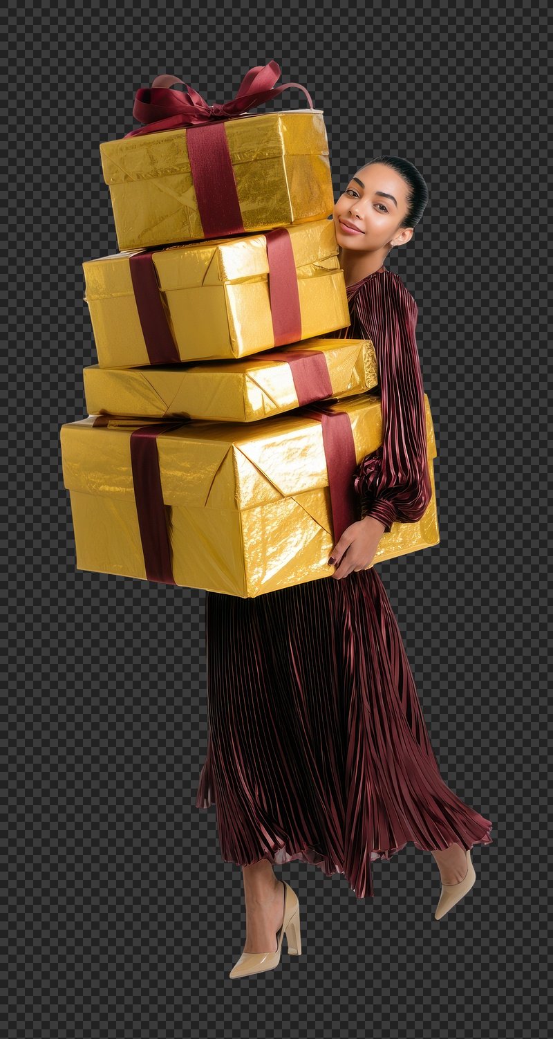 PNG Elegant woman carrying golden gifts. https://www.rawpixel.com/image/20890234/png-elegant-woman-carrying-golden-giftsView license