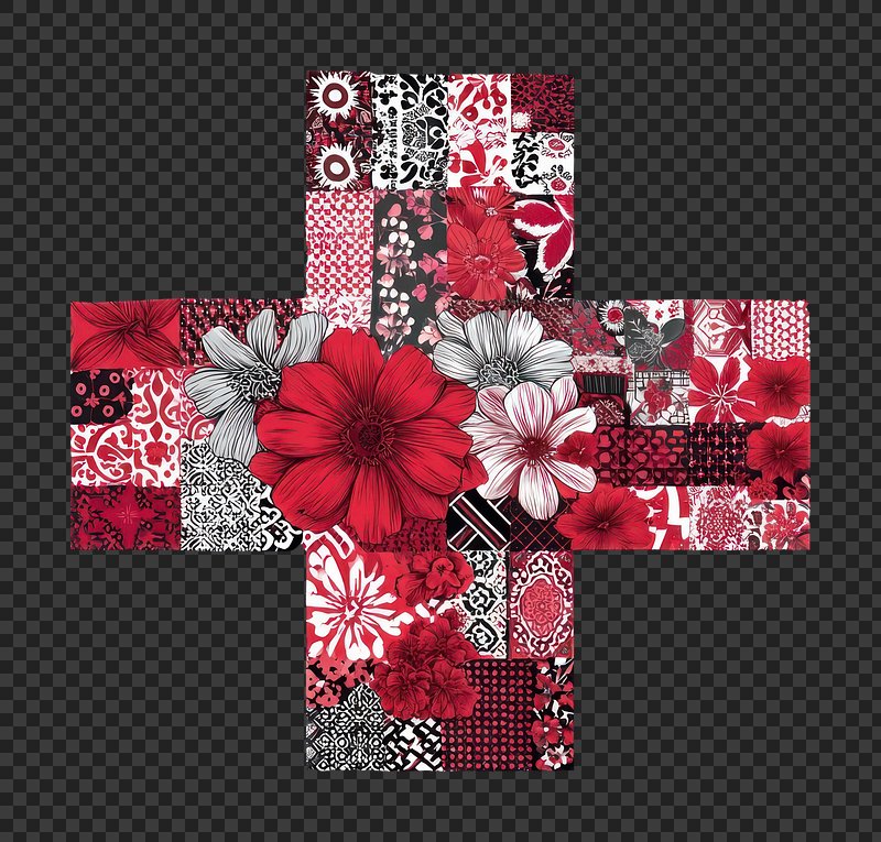 Floral patchwork cross design. https://www.rawpixel.com/image/19076886/floral-patchwork-cross-designView license