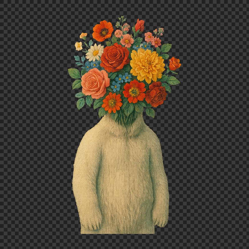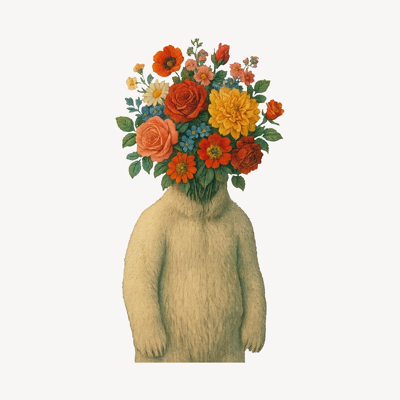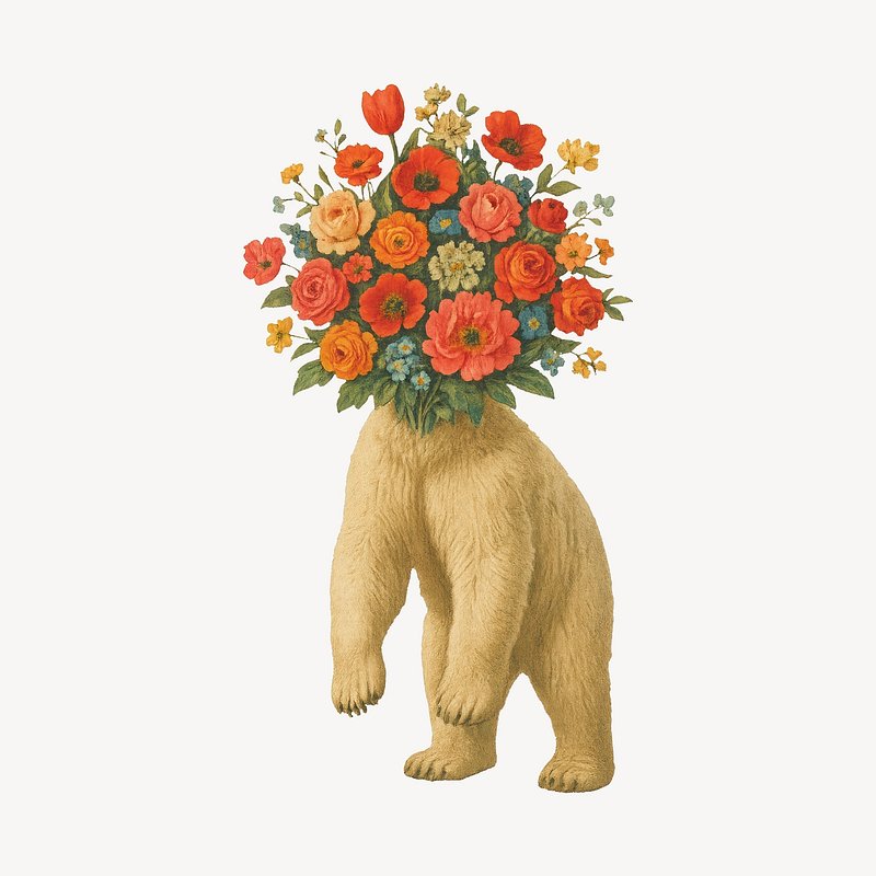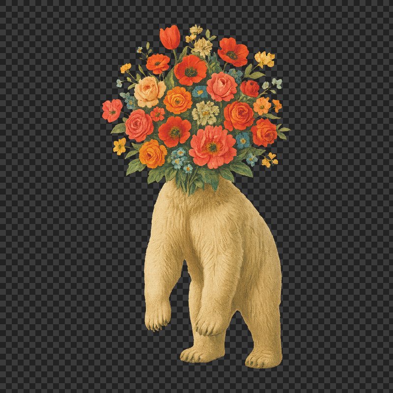 PNG Surreal bear with floral head https://www.rawpixel.com/image/21688734/png-surreal-bear-with-floral-headView license