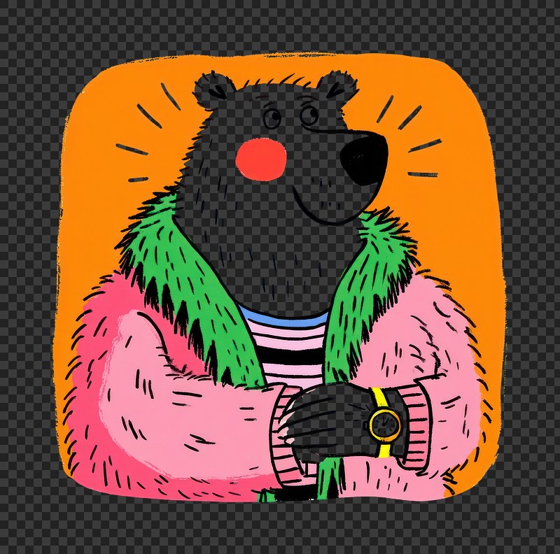 PNG Stylish bear in colorful attire. https://www.rawpixel.com/image/24020174/png-stylish-bear-colorful-attireView license