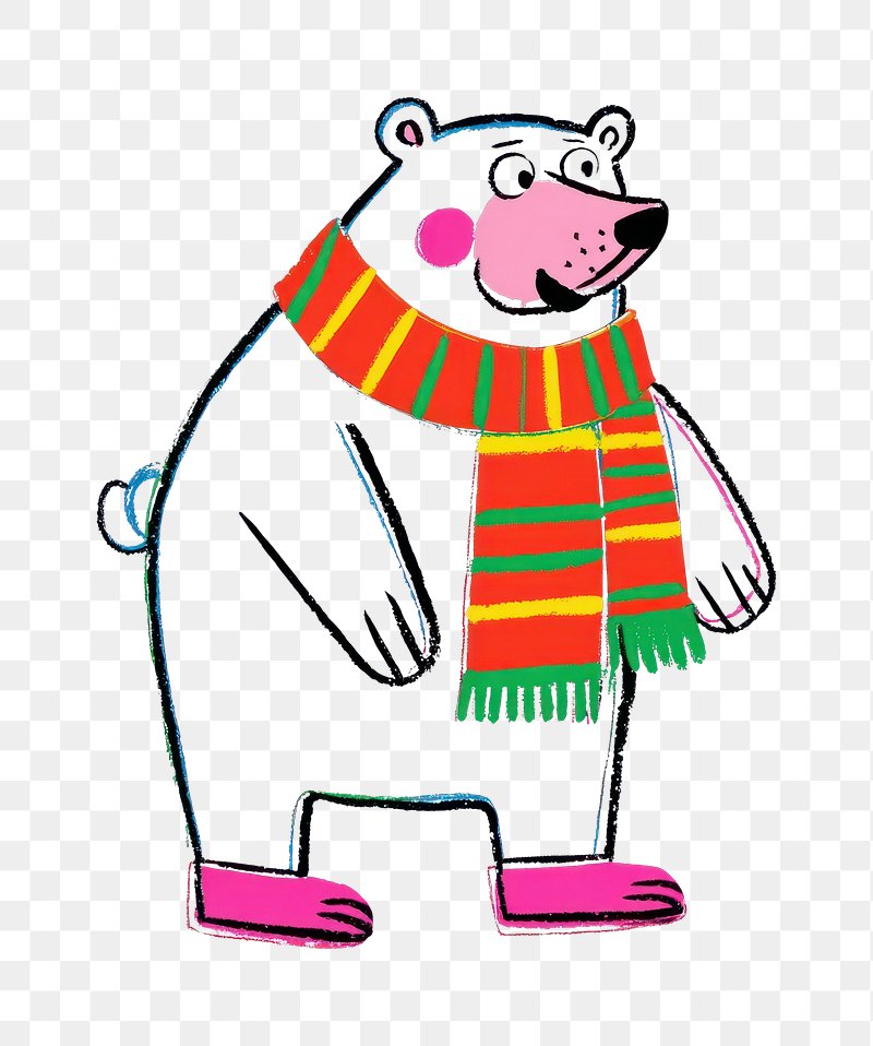 PNG Cute illustration of Polar Bear with res scarf winter white polar. https://www.rawpixel.com/image/16041603/png-cute-illustration-polar-bear-with-res-scarf-winter-white-polarView license