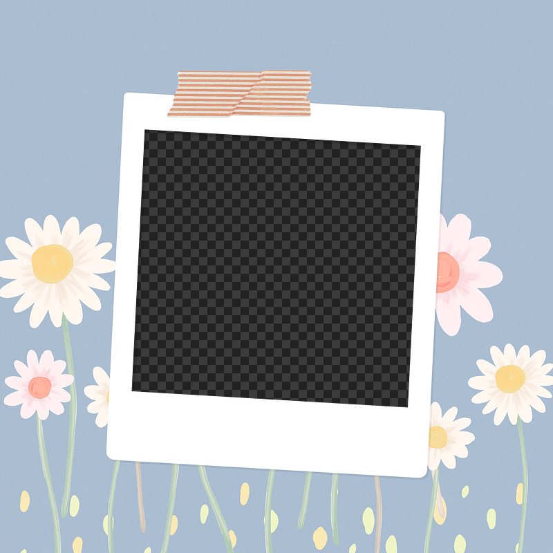 Aesthetic floral png frame, instant photo film design on transparent background https://www.rawpixel.com/image/5985908/png-polaroid-frame-stickerView license